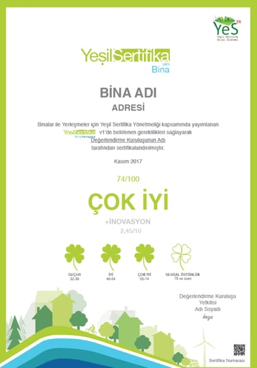 Tüm şartların sağlanması ve değerlendirme sürecinin olumlu sonuçlanması halinde proje YeS-TR Yeşil Sertifikası almaya hak kazanır. Bu süreç, yapıların çevresel etkilerini azaltan, enerji ve kaynak verimliliğini artıran sürdürülebilir yaklaşımları resmi olarak belgelemeyi amaçlar